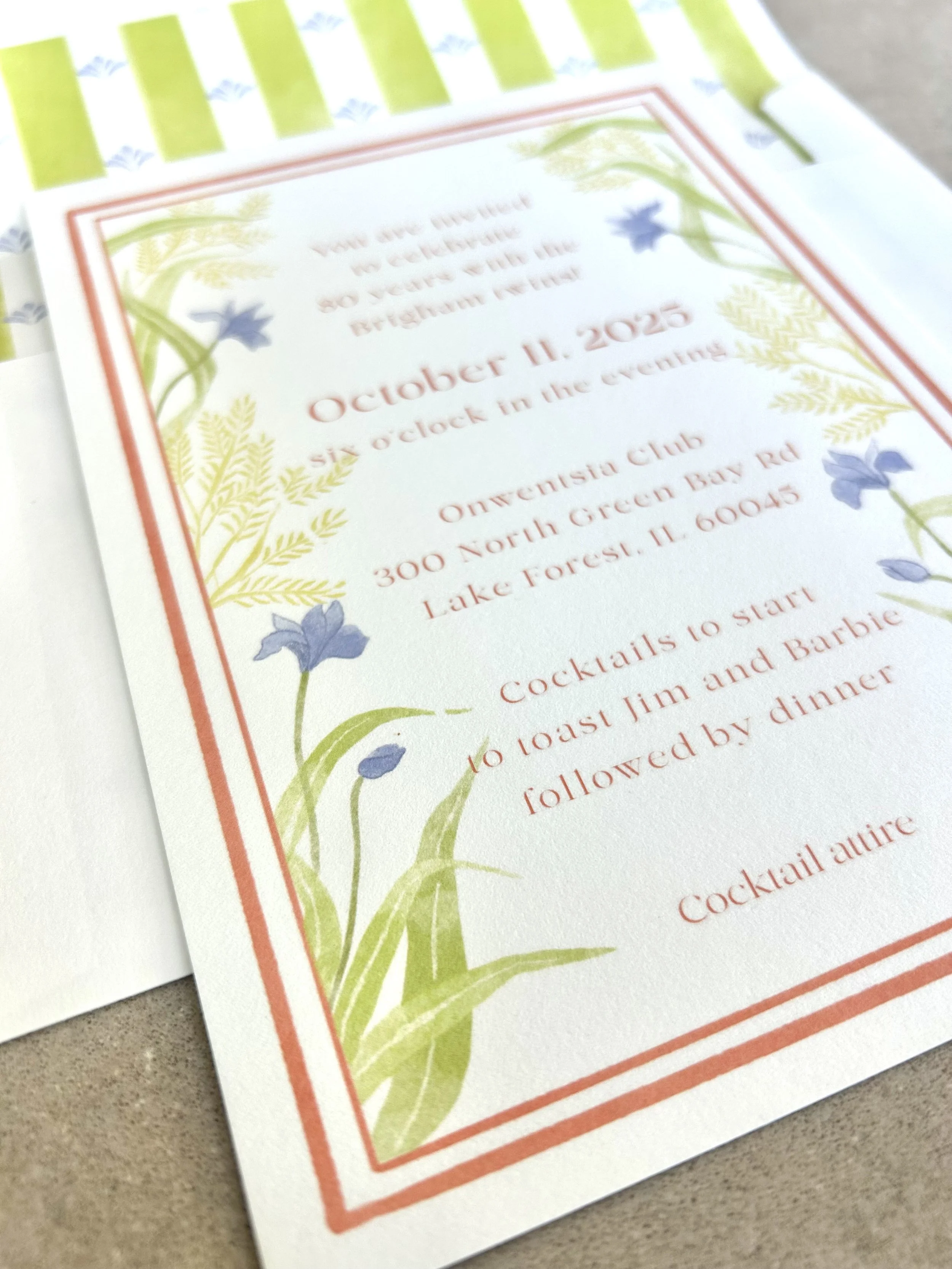 My friendly, laid-back demeanor and open communication style is something my clients appreciate while working with me. After you sign a contract, I am available during normal business hours to touch base regularly about your project. We’ll have an initial kick-off meeting (virtual or in-person) where we will discuss all of your needs, your vision, and wedding details. Once I have all the information, I’ll get working on some sketch mock-ups. This is where we hone your design wishes until your vision is perfectly captured in the artwork and typography. After mock-ups are approved, it’s time to create the final artwork and stationery suite! I will send you files and revisions through email, where you can reply with edit notes. Once the final product is approved, I’ll handle the printing, fulfillment and shipping of your invitations.